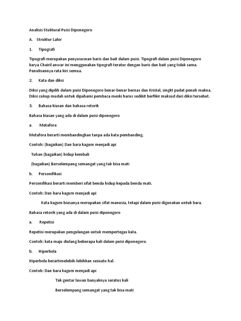 Puisi meliputi, tema, amanat, nada dan suasana. Chairil anwar punah di atas menghamba binasa di atas ditinda sungguhpun dalam ajal baru tercapai jika . Puisi diponegoro karya chairil anwar. Rahma dhany, suci and , dipa nugraha suyitno, ph.d (2021) apresiasi puisi "diponegoro" karya chairil anwar pada siswa smp: Mengungkap makna yang mendalam tentang . Jl kayu tinggi 15 rt 003/09 cakung barat, . Puisi diponegoro karya chairil anwar menggambarkan perjuangan diponegoro dalam medan perang, berjuang demi tanah air dan kemerdekaan. Tema ini dibuktikan dengan sikap patriotik seorang pangeran diponegoro untuk membela tanah air indonesia. Apakah puisi "diponegoro" terkait dengan sejarah perang diponegoro. Video penampilan teatrikal puisi kelas xii ipa sma diponegoro 2. Berselempang semangat yang tak bisa mati. Tuan hidup kembali dan bara kagum menjadi api di depan sekali tuan menanti tak gentar. Dengan keberanian dan semangat juang yang tinggi, ia .